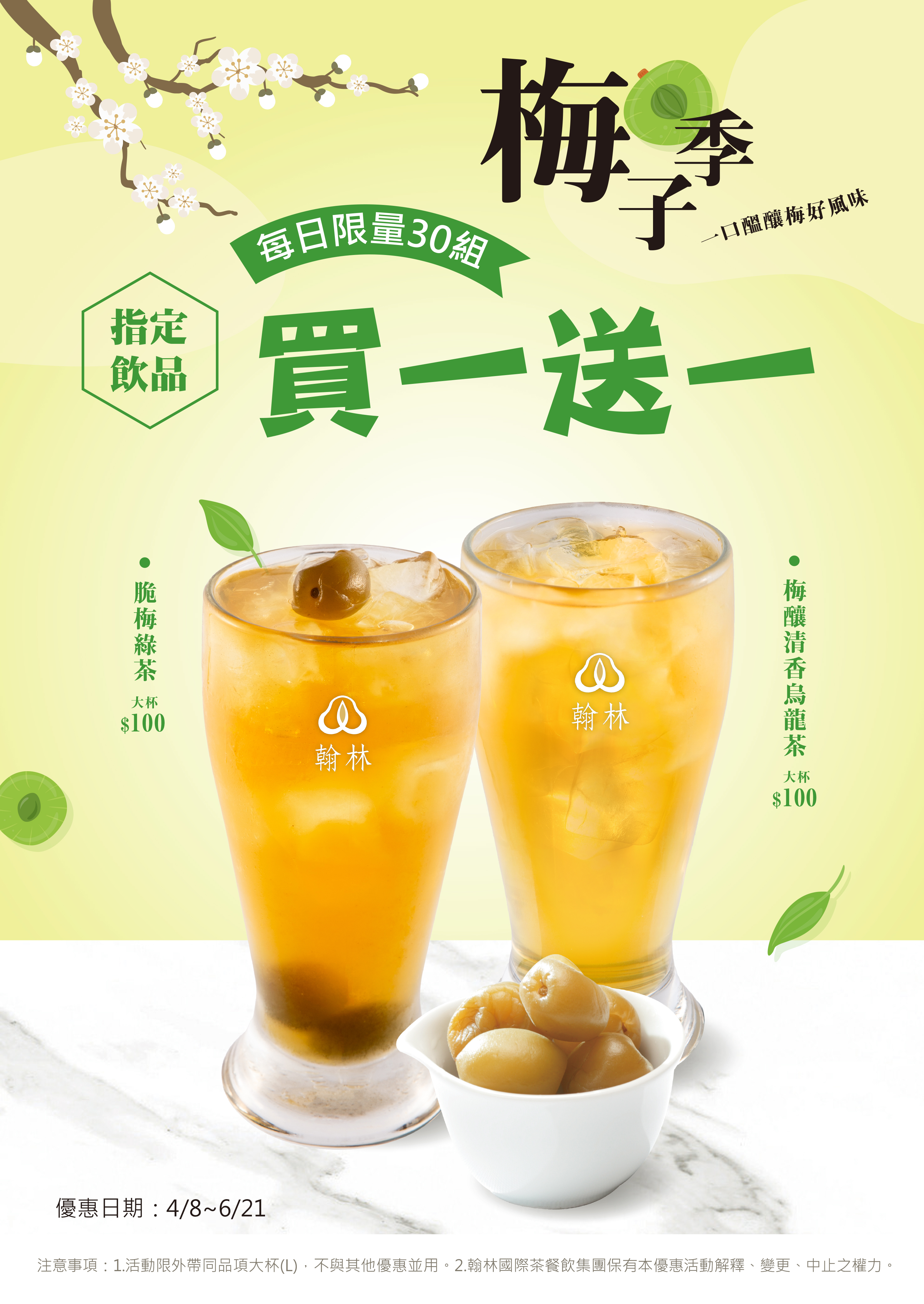 翰林茶館梅子季 每日限量 30 組:買一送一